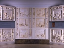Algo religioso, como de cámara ceremonial, transmitían las tablas de madera pintadas de la artista cubana Laura Carralero, en la galería hamburguesa Vera Munro. En medio de los colores oscuros unos detalles en oro refulgían como si quisiesen decir algo. También había tablas pintadas, esta vez dípticos unidos por bisagras, pero también con témpera y pan de oro, y quizá por eso también con aire religioso, en la galería ateniense Kalfayan, obra de Adrian Paci. La misma galería exponía una colección de pequeños cuadritos, acrílicos en papel, de Farida El Gazzar. Tenían un aire de postal reencuadrada, eran detalles esquinados como terrazas de edificios o árboles movidos por el viento o inmóviles en el crepúsculo, y de títulos más abstractos como I belong here o I’m lost in your translation. No había figuras.