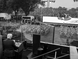 Con el discurso que dio durante el desfile por el 250º aniversario del Ejército de E.U., Donald Trump buscó convertir a los soldados en seguidores, a la institución en movimiento.