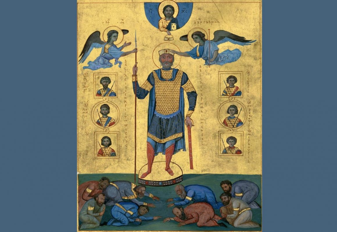 La palabra griega para humildad también tiene que ver con el suelo. Iconos e ilustraciones de la era bizantina muestran al poderoso con gente humillada a sus pies. Una famosa ilustración del emperador Basilio II lo exhibe coronado por ángeles mientras arrastrándose en el suelo se hallan sus enemigos o súbditos. O algún santo, con poca virtud cristiana, aparece pisoteando a algún hereje caído en el suelo.