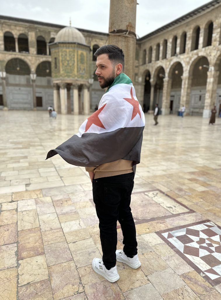 Ahora, ese patio que yace sobre lo que fuera un santuario asirio, un templo romano dedicado a Júpiter y una catedral bizantina, antes de ser transformado en espacio de culto mahometano por la dinastía de califas de la que heredó el nombre, porta una visible cicatriz metálica, vallada, que lo separa, erráticamente, en dos partes desiguales, impidiendo que uno y otro sexo crucen, como antaño, su infinita anchura. Ahora, los hombres portan largas barbas, uniformes militares, rifles al hombro y miradas perdidas. Hablan con acentos distintos, incluso en lenguas desconocidas. Enarbolan la nueva bandera siria, coronada por una franja verde y tres estrellas rojas, pero también una blanca sobre la que reza un juramento musulmán de fe transcrito en negro, dolosamente parecida a la de los talibanes afganos. Se hacen fotos con una y con otra frente al minarete llamado de Jesús, donde dicta la tradición que el Hijo de Dios bajará del cielo el Día del Juicio Final.