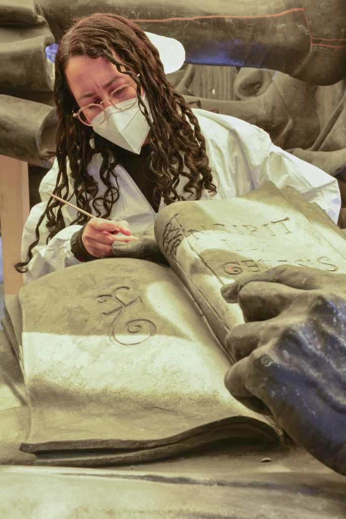 Proceso de restauración de las esculturas. Fotos: Coordinación Nacional de Restauración del Patrimonio Cultural del INAH