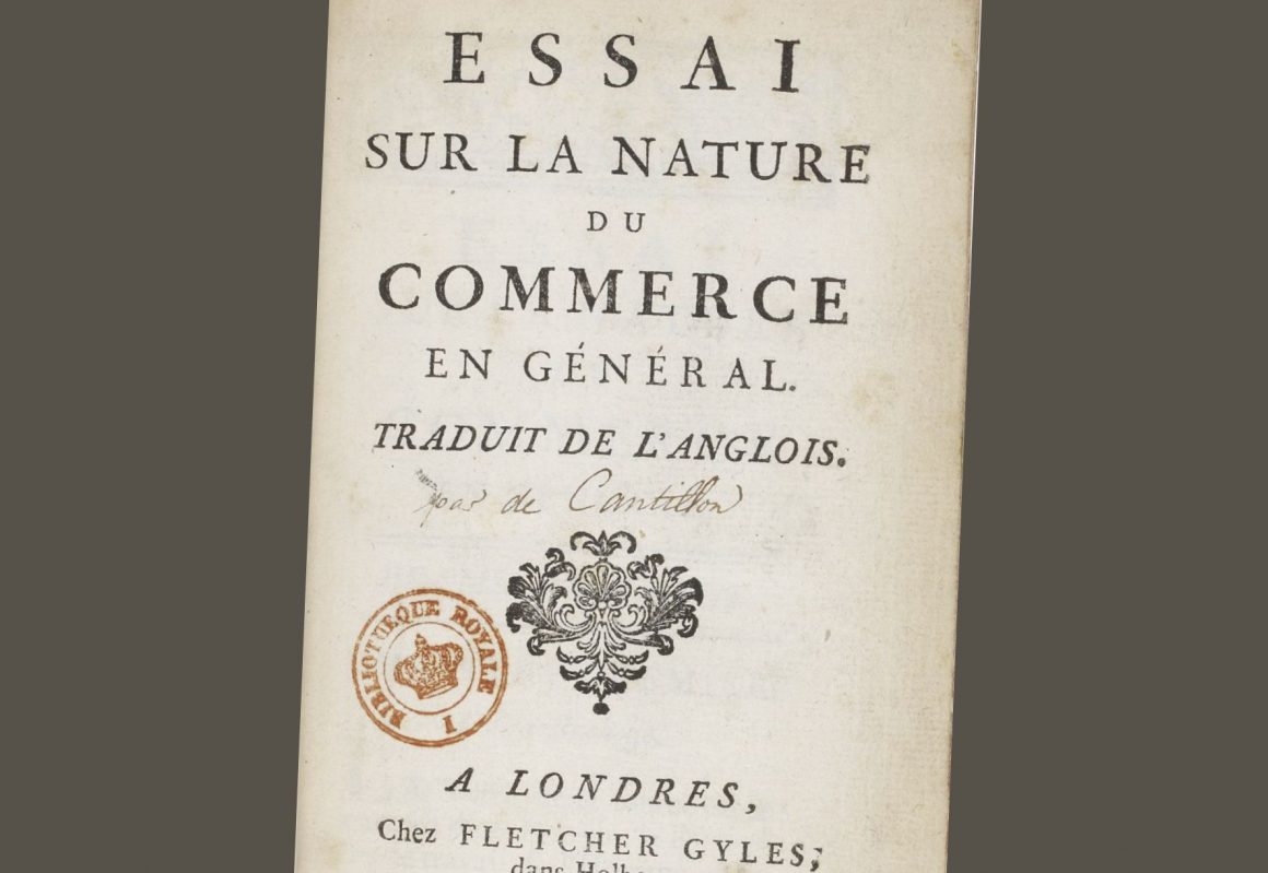 Tal es el caso de Richard Cantillon y su Ensayo sobre la naturaleza del comercio en general. Nació en Irlanda, entre 1680 y 1690. Se ha dicho que su apellido es de origen español, pero es de origen normando. Fue vástago de una familia terrateniente venida a menos. Emigró a París, donde se hizo multimillonario en el mundo financiero, bancario y bursátil. Escribió su libro en francés (que era la lengua de las elites europeas) en 1730, y empezó a circular copiado a mano, antes de su publicación en 1755. (Antoin E. Murphy, Richard Cantillon. Entrepreneur and economist, Oxford University Press, 1986).