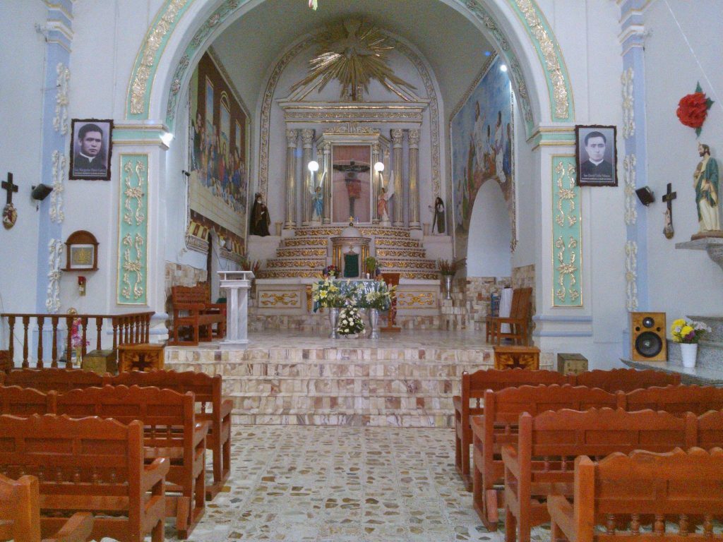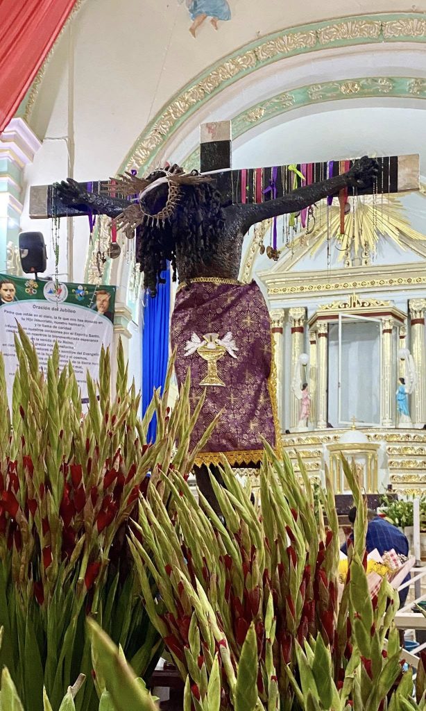 La misma fuente menciona también el templo del lugar: “tiene una iglesia de la advocación de Nuestra Señora de la Asunción”, pero no se refiere a él como una “capilla abierta”, como sí lo hace explícitamente al referirse al de Iguala.2 El templo actual –con la categoría de parroquia– no conserva ya esa antigua advocación, pues se venera en él al Señor de Chalma (fig. 2). La tradición oral explica el cambio señalando que la imagen titular se halló enterrada bajo la iglesia de Santa María de Xelican el 21 de mayo de 1700 y se le llevó a Mayanalán para rendirle culto. Se trata de un Cristo crucificado similar, pero no idéntico al de Chalma, en el Estado de México, con cabello natural rizado y piel oscura, ya sea por su material original o por el paso del tiempo. Su rostro apenas se distingue por la inclinación de la cabeza y la abundante cabellera, y algunos afirman que cada vez se ve menos, que “cada vez está más agachado”, debido “a la maldad que hay”. El Señor de Chalma de Mayanalán goza de una profunda devoción, y cada cuarto viernes de Cuaresma congrega a numerosos fieles en una concurrida fiesta religiosa y popular.