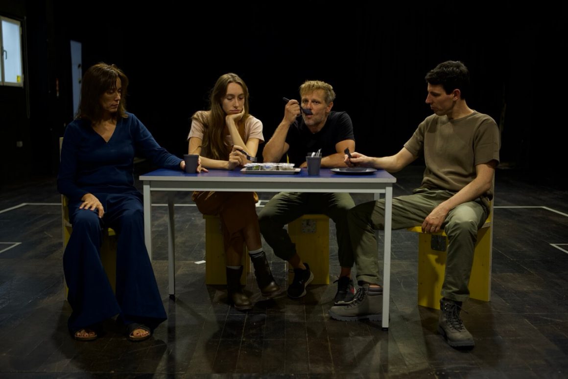 La utopía –un mundo sin basura nuclear– exige dos motores: la provocación y la confrontación. Los cinco personajes forman una estrella de cinco vértices de esos dos motores. La alucinación de la desequilibrada Isabel se enfrenta a la ceguera de la funcionaria Ada. La responsabilidad de Rodrigo choca con el cinismo de Jaime. Nicolás es un cuerpo extraño. Es escéptico y cobarde. Representa la superficialidad del saber convencional. Llama la atención de esta distopía su realismo. Quizá en el libro el realismo quedé más marcado que en la representación. Tal vez por la dificultad de presentar la basura, tanto marítima como terrestre. El simbolismo de la basura no solo es relevante por el tema de la obra –los residuos tóxicos que envenenan los océanos– sino que impregna los espacios. Los personajes se quejan de los olores. Y los escenarios son umbrales –lugares de paso: el comedor y “el área de paso con mirador acristalado” en el libro–, espacios sucios. El refugio del quinto acto es un infierno. Es el mundo subterráneo. El mundo celeste es el mundo de los extraterrestres salvadores. Esa disposición espacial vertical –cielo, tierra, submundo– es imprescindible para un alegato distópico.
