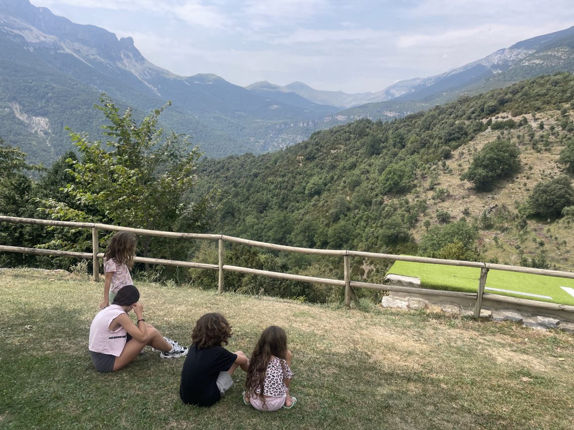 Estábamos en las pozas de las Gorgas de Puértolas, en el cauce del Cinca. Habíamos atravesado la zona seca, llena de piedras lisas y blancas hasta una de las siete zonas de baño. El cartel oficial dice Zona de baño, el de una gran empresa avisa de crecidas súbitas del cauce, incluso con buen tiempo, vamos que pueden abrir las presas. Los niños saltaban desde las piedras y yo hacía de tripas corazón para ver los saltos y no respiraba hasta que no veía sus cabecitas sonrientes fuera del agua. De camino al puerto de Tella, en esas curvas en scalextric siempre hacia arriba hasta los 1380 metros de altitud tuve el pálpito de que mi hermano el que me sigue había subido ese puerto con la bici. En cuanto recuperamos la cobertura, recibí una foto suya nada más coronar que me daba la razón.