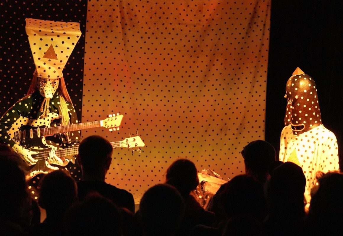 Alrededor de Angine de Poitrine hay muchas incógnitas. Su imagen está cuidada hasta el último detalle. En entrevistas se comunican con traducción simultánea o a través de su representante. Su voz recuerda a los daleks, los cyborg de Dr. Who, y sus vestimentas llenas de lunares sugieren una especie de varicela cósmica. Los triángulos dorados que cada uno porta hacen pensar en puntos de poder, chakras intergalácticos cuya energía se comparten mutuamente entre canción y canción, en un ritual que su público ha adoptado. Pero detrás de esas largas narices y esos cuerpos moteados, Khn de Poitrine (guitarra microtonal, bajo microtonal, estación de loops, sintetizadores, voces) y Klek de Poitrine (batería y voces), quienes se describen como una “orquesta mantra-rock dadá pitago-cubista”, son en realidad increíbles músicos de carne y hueso. Si escuchamos atentamente, descubriremos que su música es de origen terrestre.