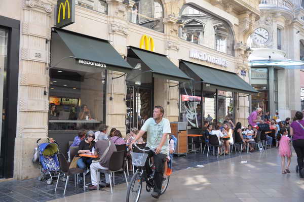 Son justamente esos jóvenes los que abarrotan los McDonald’s y otros locales de comida rápida de la capital durante el lunch; son estos los mismos adultos que prefieren (o necesitan) comer en pocos minutos y están cansados del servicio malhumorado de los garçons parisinos. Y no quiero decir que todo mundo come así, pero la verdad es que los bistros ya no están tan abarrotados y las variedades sencillas y baratas de estos comercios ofrecen una solución rápida a miles de comensales que, como sucede en todas partes del mundo, deben buscar economizar tiempo para maximizar rendimientos. Precisamente esta mentalidad es la que nos esta empanzonando. Pero la propuesta, más allá de cambiar hábitos, pareciera que solo se centra en reducir nuestro consumo calórico, mas no necesariamente en tener comidas más balanceadas.