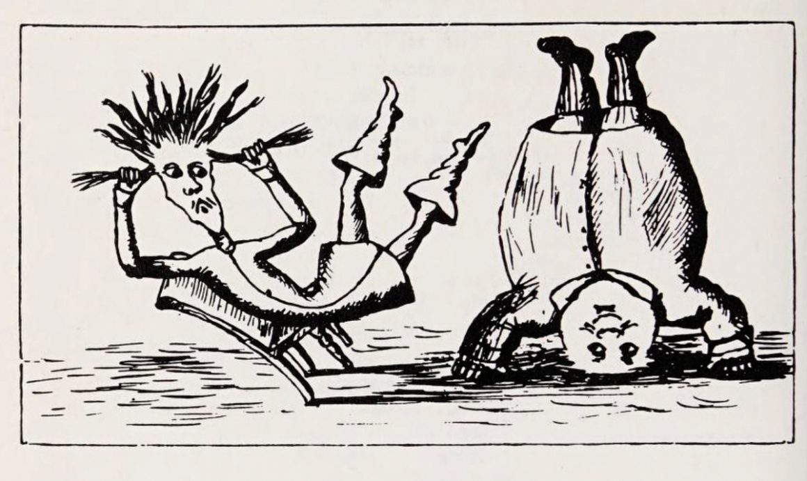 ¡Marcado por la poesía desde los diez años! Por la bofetada de la poesía. ¡Milton Klonsky! Oí por primera vez su nombre de estrépito y conjuro al encontrar su antología Speaking pictures, donde recoge un poema y un dibujo de Jaime de Angulo, que había dejado suelto el hilo del que tiré. El dibujo es esquemático y muy gracioso, y el poema, en francés, va acompañado de la traducción al inglés de Ezra Pound. Me gustaron el dibujo y el poema (“lo sorprendí / en las lindes del bosque / al alba / el licántropo que cambiaba de forma…”, si lo traduzco desde el original, o bien “Hombre lobo en la floresta vi / en el alba del día cambiando de forma…” si mi traducción es desde la de Pound, como si yo fuese él traduciendo a los chinos). Me doy cuenta ahora de que el poema tiene el aire mallarmeano de la siesta del fauno, con un toque oriental en su sencillez. Mallarmé es otro de los poetas compilados, con la tirada de dados, porque el libro está dedicado a los poemas inseparables de la imagen, desde los libros de emblemas hasta la pintada en el baño de chicas de un instituto que cierra la selección.