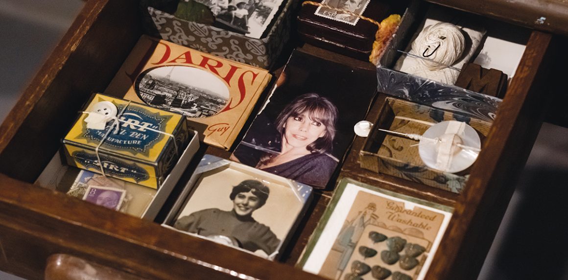 Siguiendo la idea del espacio cotidiano como detonador de inspiración, tuve la fortuna de encontrar un par de publicaciones de Pecanins en la biblioteca de mi trabajo que me permitieron explorar otra de las dimensiones de la obra de esta artista. Al abrirlos y adentrarme en ellos, descubrí el detalle de cada elemento que los compone: el encuentro con ambos libros se siente como participar de un momento íntimo, como si se tratara de una caja de recuerdos personales que, por lo tanto, requiere cuidado y atención para no transgredir la memoria ahí contenida. Uno de estos ejemplares es un catálogo de la exposición Exilios que se presentó en el 2000 en la Galería Pecanins –espacio de exhibición fundado por su madre Teresa y sus tías Ana María y Montserrat en 1964–. En esta muestra, la artista profundizó en historias de mujeres desplazadas por la guerra y la publicación que la acompaña incluye un texto de Luis Carlos Emerich, quien escribe: “Yani Pecanins ha hecho de la actividad artística el objeto de su afecto, indispensable para sobrevivir durante su travesía hacia la otredad representada por el objeto personal desahuciado, pero recuperado.” Estas palabras pueden extenderse a la exposición que ahora se presenta en el MACG, pues los objetos expuestos mantienen un diálogo entre lo fragmentario y la memoria dispersa. La segunda publicación me llevó de vuelta al MACG, pero en 2013 cuando se presentó su exposición Paseo de gracia con textos de Magali Lara y Armando Sáenz, quienes compartían la impresión de que el trabajo de Pecanins conjugaba el ejercicio de varios oficios y giraba alrededor del deseo de construir una memoria familiar.